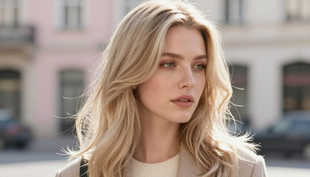 - Helles Aschblond: Diese Nuance ist ideal für dich, wenn du einen sehr hellen Teint hast und deinem Haar einen kühlen, fast platinblonden Touch verleihen möchtest. Helles Aschblond wirkt besonders gut bei feinen Haaren und kann deinem Look eine frische, jugendliche Ausstrahlung verleihen.