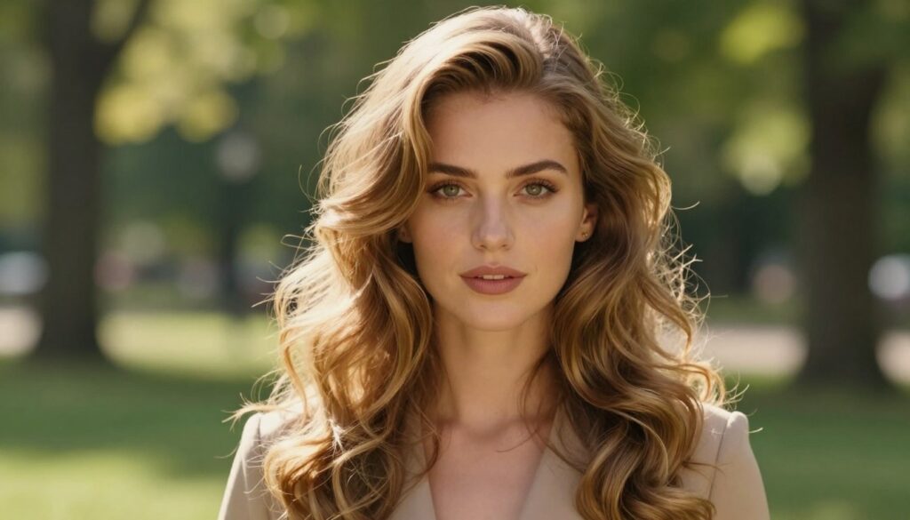 - Glattes Haar: Glattes, glänzendes Haar betont die goldenen und braunen Reflexe und wirkt besonders elegant.