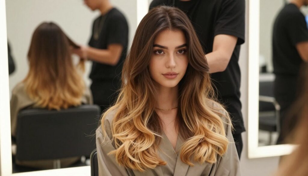Beim inversen Ombré ist es genau umgekehrt: Die Ansätze sind hell und die Spitzen dunkel. Diese Variante ist besonders gut geeignet, wenn du dunkle Haare hast und deinen Look etwas aufpeppen möchtest, ohne gleich eine komplette Blondierung zu riskieren. Inverses Ombré verleiht deinem Haar einen edgy und modernen Touch.