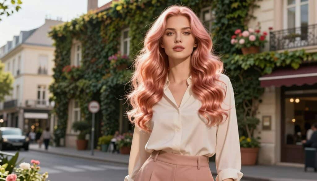 Rosegold-Haarfarbe ist unglaublich vielseitig und lässt sich zu verschiedenen Stilen und Anlässen kombinieren. Lass dich von diesen Styling-Ideen inspirieren: