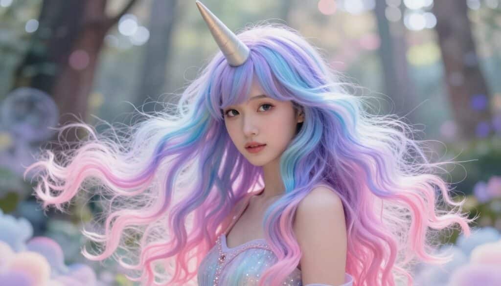 Die Farbpalette der Unicorn Haarfarben ist so vielfältig wie die Fantasie selbst. Hier sind einige der beliebtesten Nuancen: