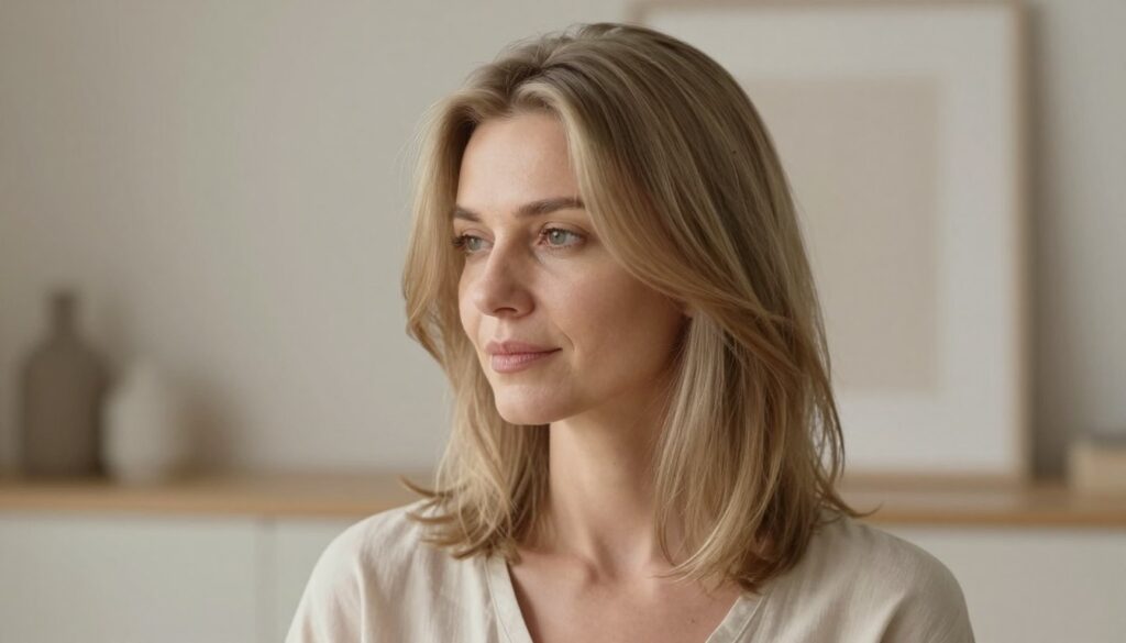 Der minimalistische Ansatz bedeutet aber nicht, dass du auf Individualität verzichten musst. Im Gegenteil: Durch die Reduktion auf das Wesentliche kannst du deine Persönlichkeit auf eine ganz besondere Art zum Ausdruck bringen. Wähle eine Farbe, die zu deinem Stil passt und mit der du dich wohlfühlst. Ob du dich für ein kühles Aschblond, ein warmes Schokoladenbraun oder ein elegantes Grau entscheidest – wichtig ist, dass die Farbe deine natürliche Ausstrahlung unterstreicht und dich zum Strahlen bringt.