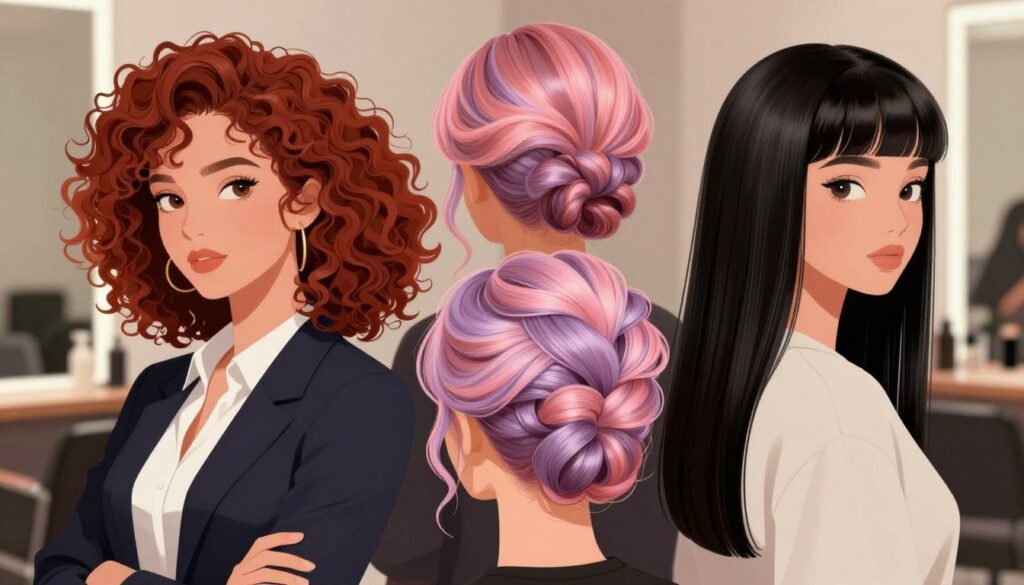 - Intensive Farben für Mutige: Wenn du es wagst, kannst du mit intensiven Farben wie Rot, Violett oder Blau einen einzigartigen Look kreieren. Diese Farben sind besonders эффектvoll auf dunkleren Locken und bringen deine Persönlichkeit zum Ausdruck.