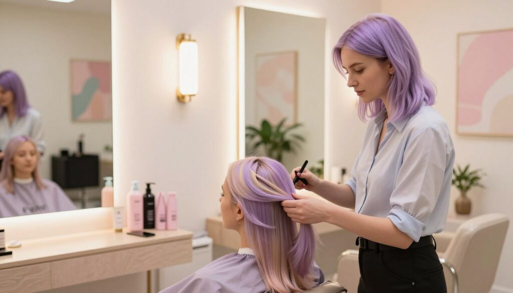 - Lavendel: Ein verträumter, eleganter Ton, der deinem Haar einen Hauch von Mystik verleiht. Lavendel harmoniert besonders gut mit kühlen Hauttönen.