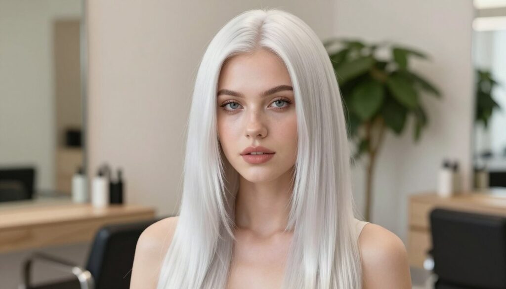 Stell dir vor, du schwebst auf einer Wolke aus reinem Licht, umhüllt von einer Aura, die so strahlend und makellos ist wie frisch gefallener Schnee. Stell dir vor, deine Haare spiegeln diese Reinheit wider, verwandeln dich in eine Eisprinzessin, eine Elfe aus einem Wintermärchen oder eine futuristische Göttin. Mit einer Haartönung in Schneeweiß kannst du genau das erreichen!