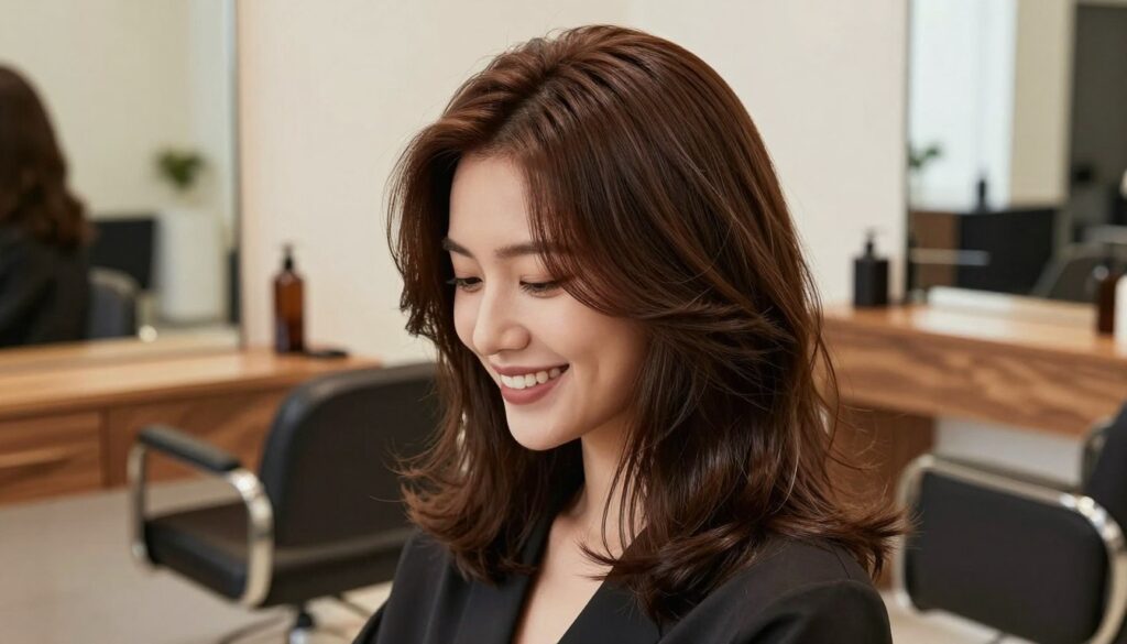 - Natürlicher Look: Wähle eine helle oder mittlere Schokobraun-Tönung ohne auffällige Reflexe.